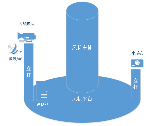 同时由于风机主体的遮挡,会造成一定范围的监控盲区,因此考虑成本不明显增加的情况下,新增安装普通小型球机摄像头,实现盲区内的监控。